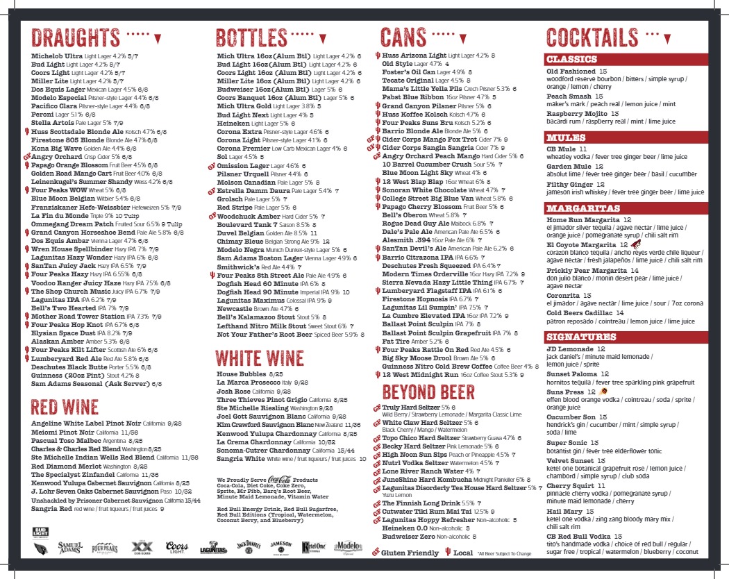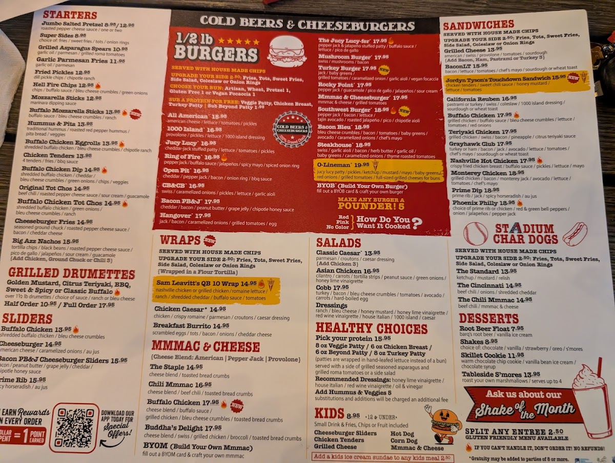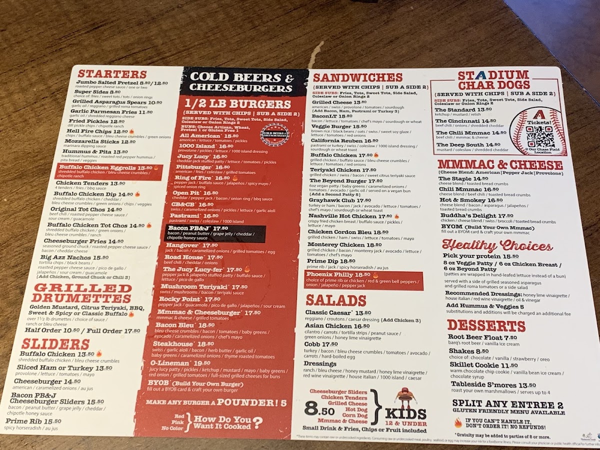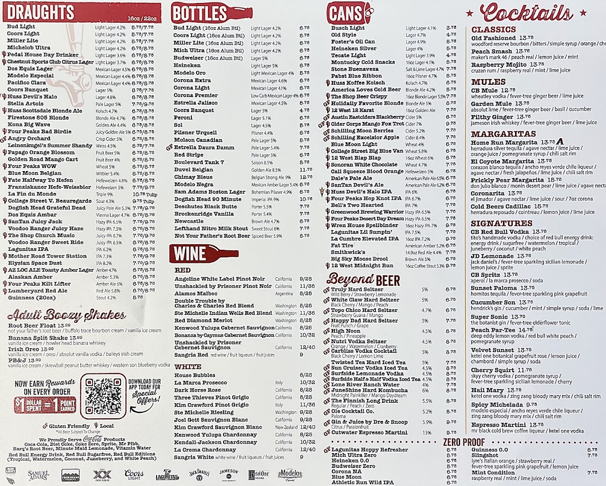 Cold Beers & Cheeseburgers in Chandler, AZ, is a vibrant spot where casual dining meets lively sports bar energy. The menu shines with juicy, expertly crafted burgers that have won loyal fans, like the fiery Ring Of Fire, beloved for its bold yet balanced kick. Beyond burgers, their grilled wings come in various flavorful styles—from classic Buffalo to tangy Citrus Teriyaki—each served with ranch or bleu cheese for dipping. Starters like the Buffalo Chicken TotChos and Jumbo Salted Pretzels pair perfectly with cold brews, making them ideal for sharing. Fresh salads, including a hearty Cobb and an Asian Chicken Salad with peanut sauce, offer lighter options but still deliver rich flavors. The friendly service and numerous TVs create a welcoming atmosphere that appeals to both families and sports fans. Whether craving a solid burger or a spirited night out, Cold Beers & Cheeseburgers provides an authentic bar & grill experience with a satisfying variety of hearty dishes.
